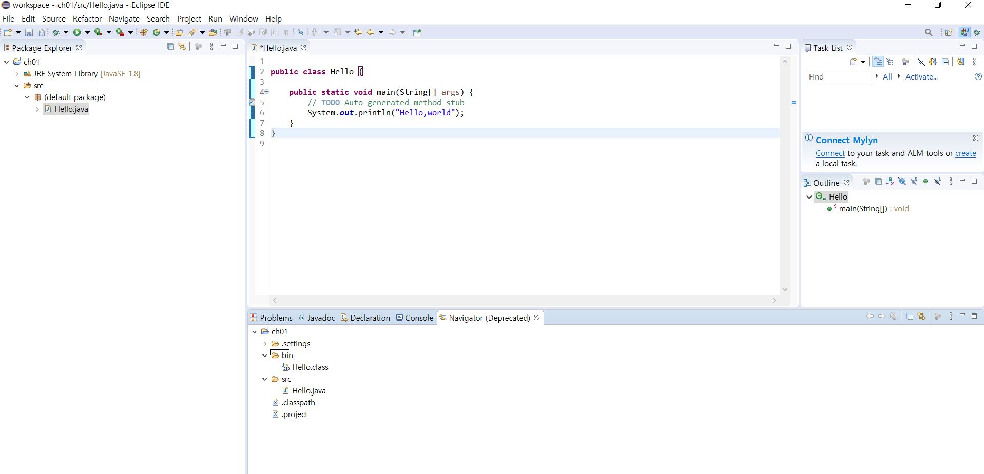 Window > Show View > Navigator (Deprecated) 에서 확인
