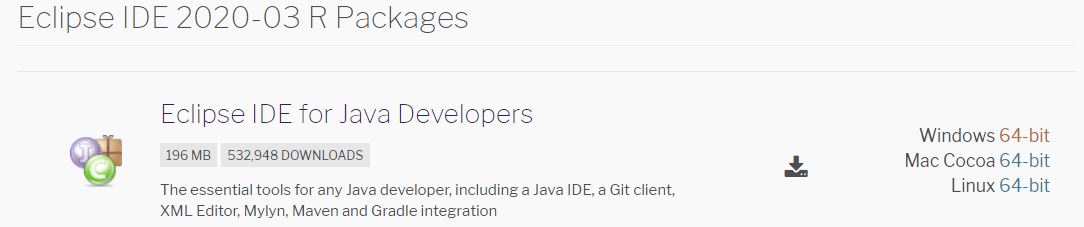 3. Eclipse IDE for Java Developers 에서 본인 컴퓨터에 맞게 클릭하여 설치 (제어판 > 시스템에서 비트 확인 가능)
