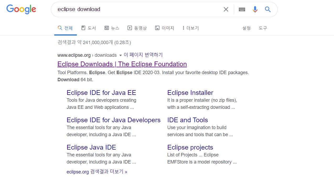 1. 구글 검색 (eclipse download) 하여 Eclipse Downloads 클릭